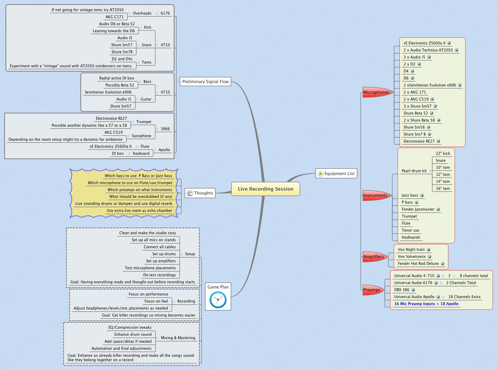 For your information, I’ve gathered some links to the microphones, preamps and instruments that we’re using in this session so you can get a fix for your G.A.S. (Gear Acquisition Syndrome).